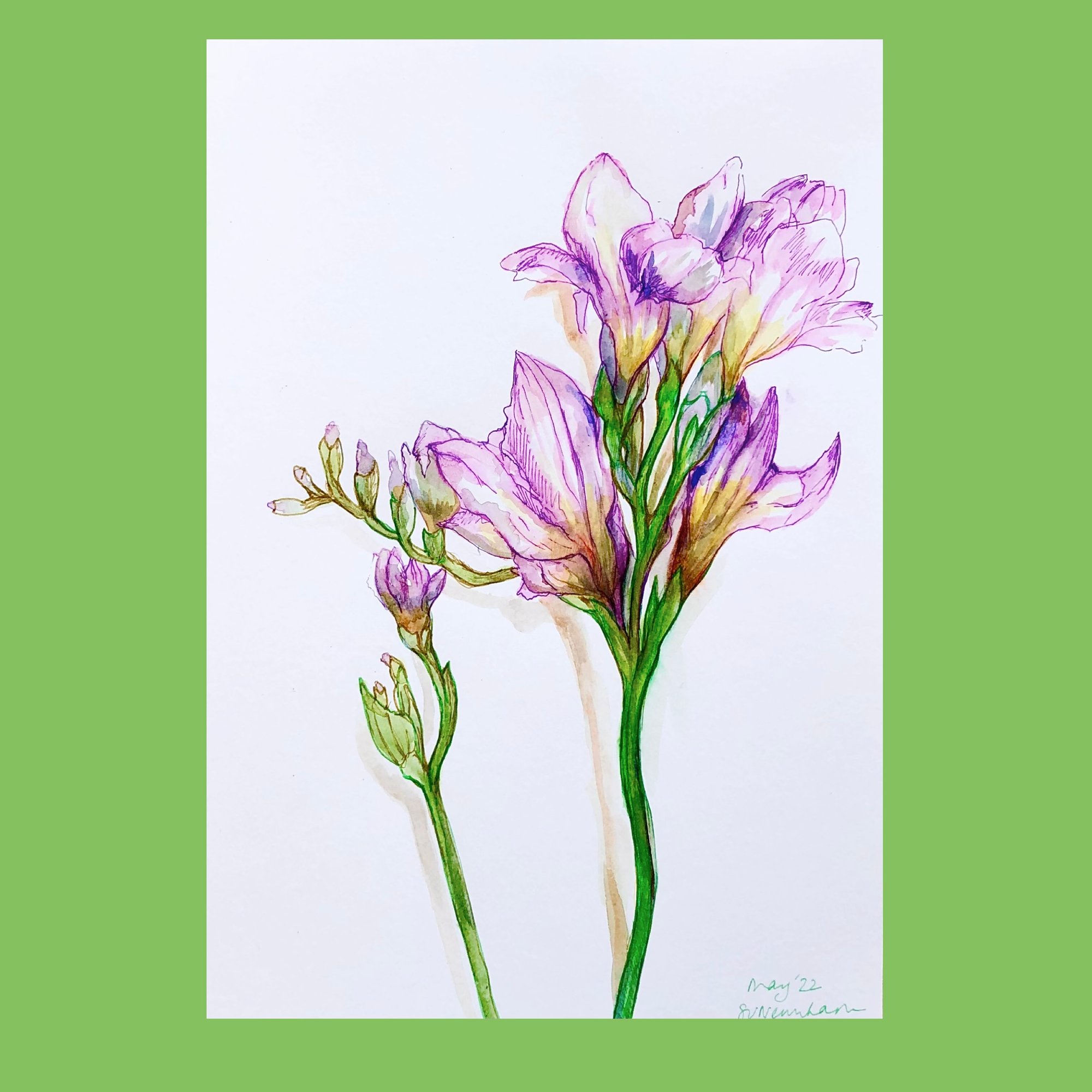 Watercolour and Ink study of a Freesia on 300 gsm watercolour paper | A4