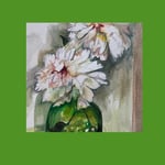 Ink and Watercolour study of a pair of peonies in a green vase on watercolour paper| A4