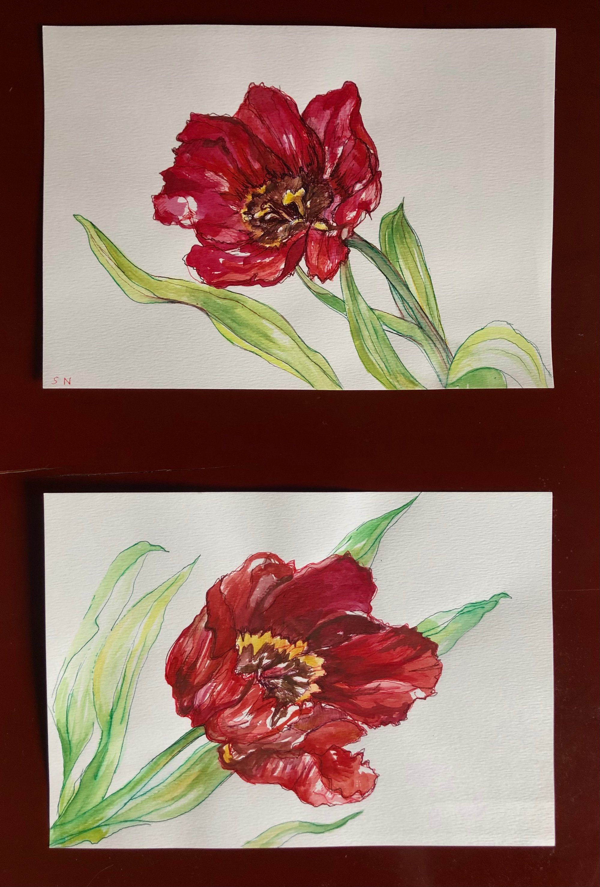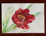 Ink and Watercolour study of a red tulip on watercolour paper | A5